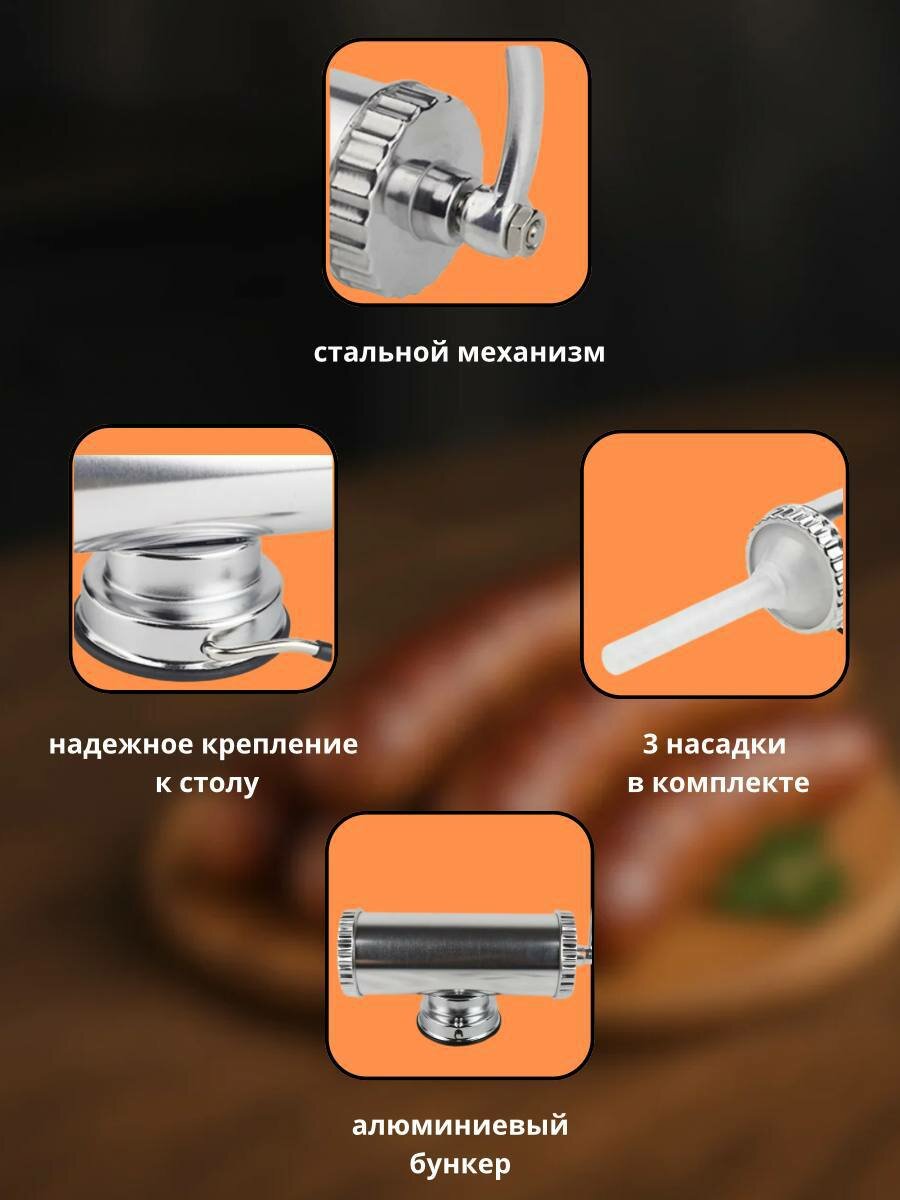 Колбасный шприц горизонтальный, 3 насадки для сосисок, купат, домашней колбасы: сравнение цен, характеристики, фото, актуальное наличие и цены.