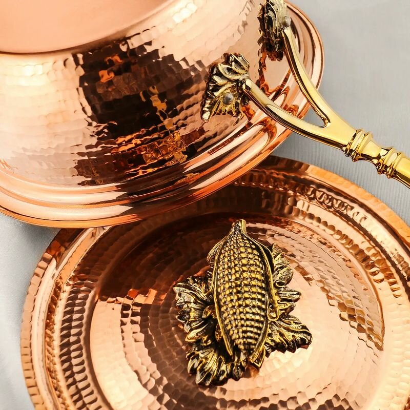 Купить Кольчугинский мельхиор Сотейник с крышкой медный с лужением кованый Кукуруза (С72208/8) с доставкой по всей России.