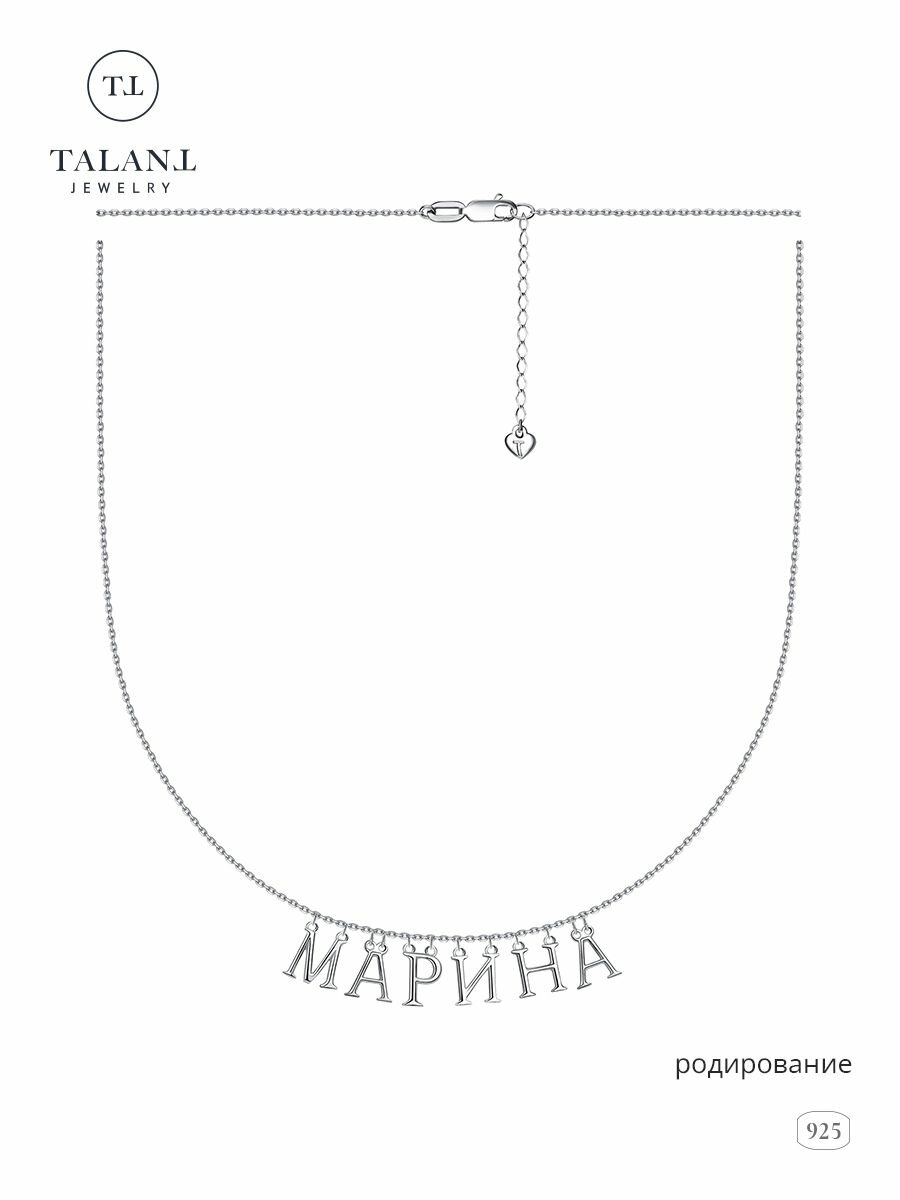 Колье TALANT, серебро, 925 проба, родирование, длина 45 см., серебристый