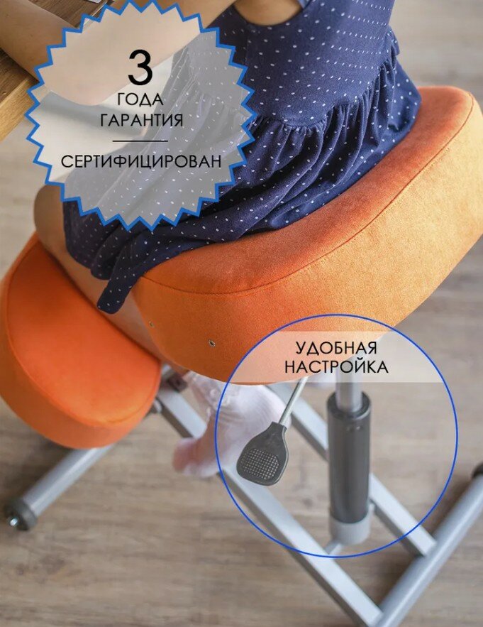 Коленный стул, подушки комфорт толщиной 8 см, автоматическая регулировка высоты газлифт, инструкция