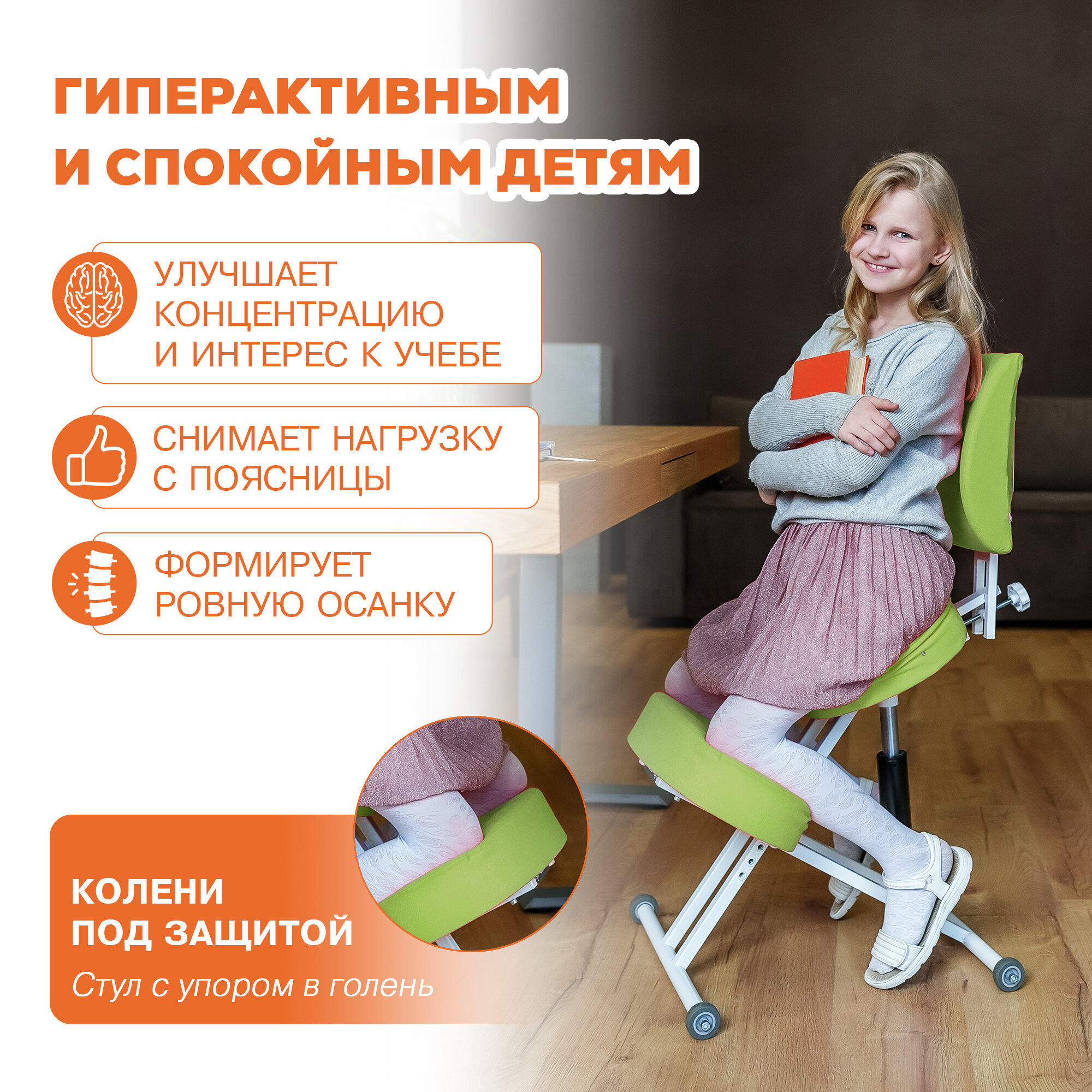 - Подставка под колени не позволяет сидеть в асимметричных позах, наиболее опасных для позвоночника растущих детей.