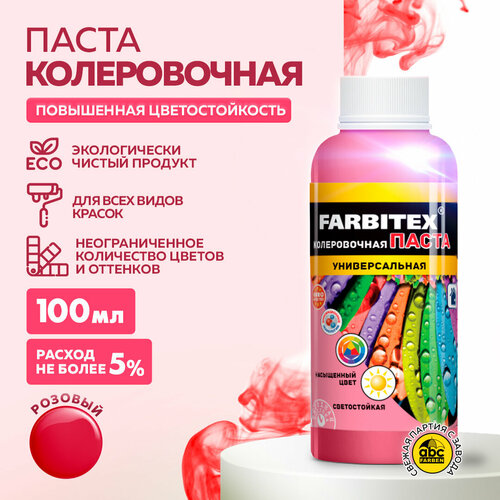 Купить Колер для краски, паста колеровочная универсальная FARBITEX Розовый 100 мл с доставкой по всей России.