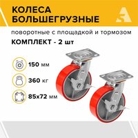 Купить Колеса большегрузные SCPB 63 поворотные, с площадкой и тормозом, 150 мм, 360 кг, полиуретан, комплект 2 — шт. с доставкой по всей России.