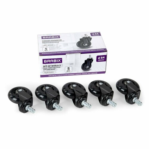Купить Колеса (ролики) BRABIX для кресла мягкие, резиновые d64мм, комплект 5шт, шток d11мм, в коробе, 533087 с доставкой по всей России. Колеса (ролики) BRABIX для кресла мягкие, резиновые d64мм, комплект 5шт, шток d11мм, в коробе, 533087: сравнение цен, характеристики, фото, актуальное наличие и цены.