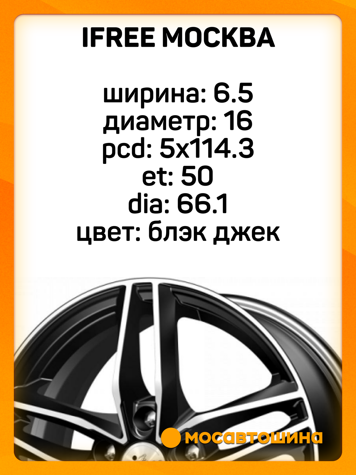 Диски автомобильные iFree Moskva 6,5×16 5×114,3 ET50 66,1 Блэк джек: сравнение цен, характеристики, фото, актуальное наличие и цены.