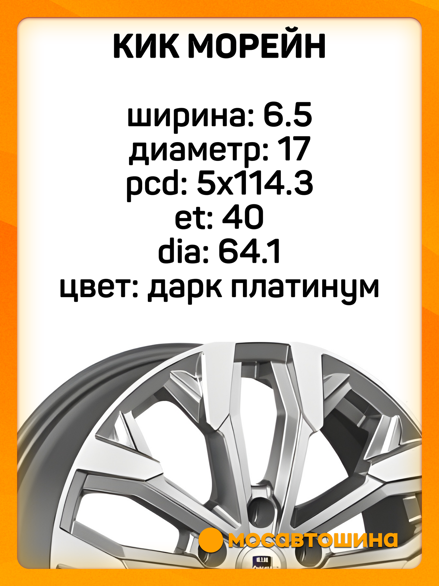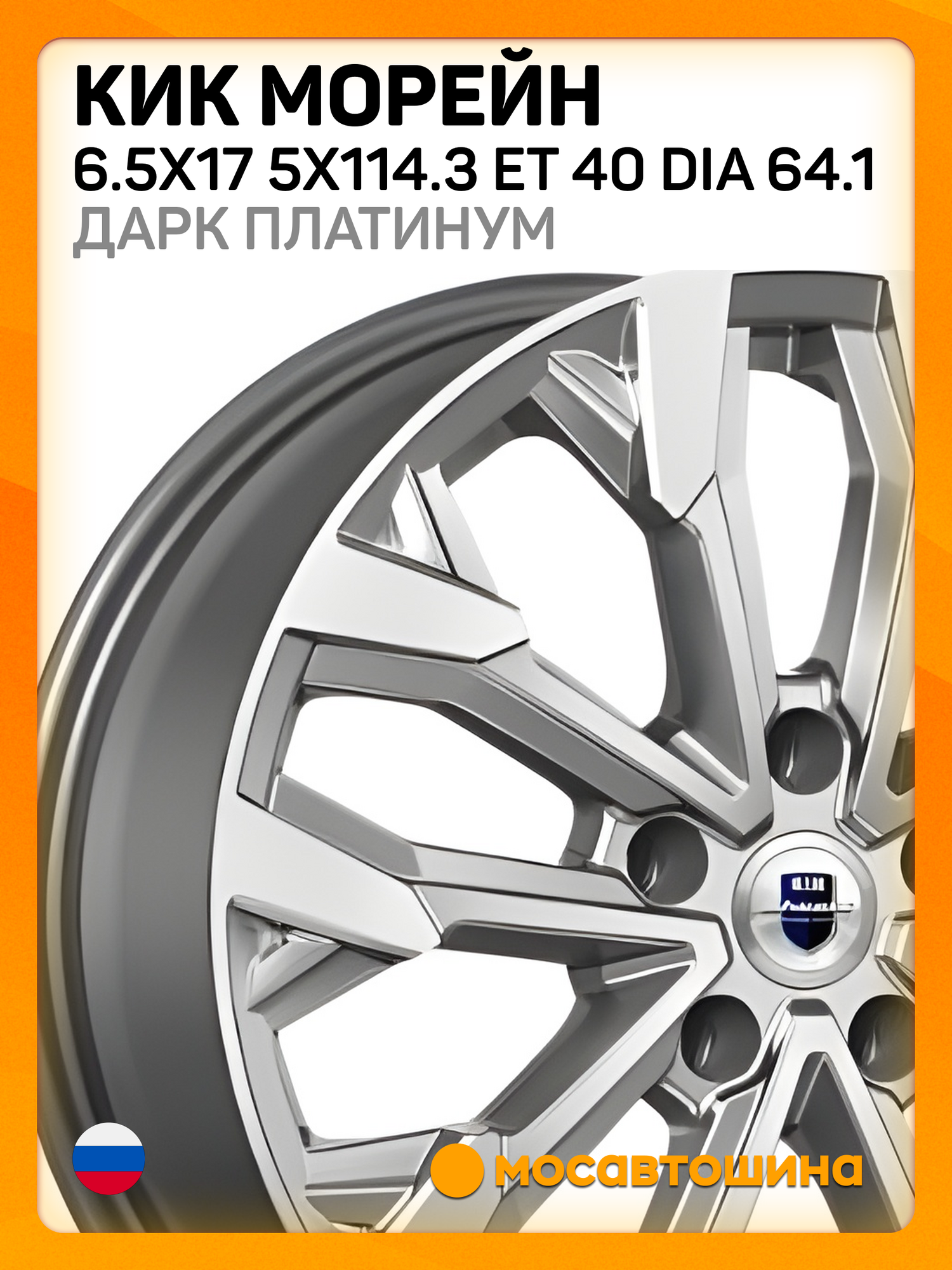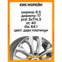 Диски КиК Морейн 6,5x17 5x114,3 ET 40 Dia 64,1 в отделке "дарк платинум" — это легкосплавные диски, которые предлагают сочетание современного дизайна и надежности. Вот основные характеристики и описание: