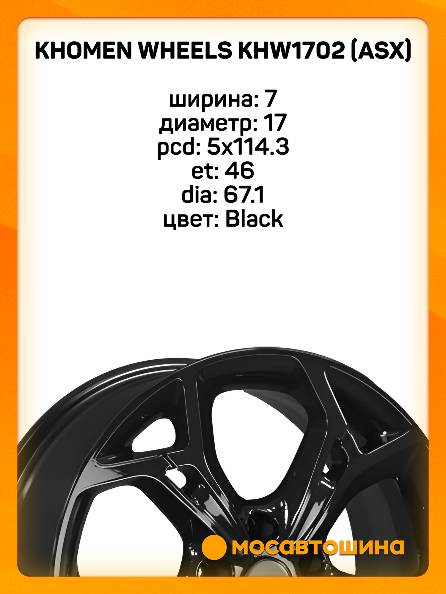 Автомобильные диски Khomen Wheels KHW1702 (ASX) 7×17 5×114.3 ET 46 Dia 67.1 Black: сравнение цен, характеристики, фото, актуальное наличие и цены.