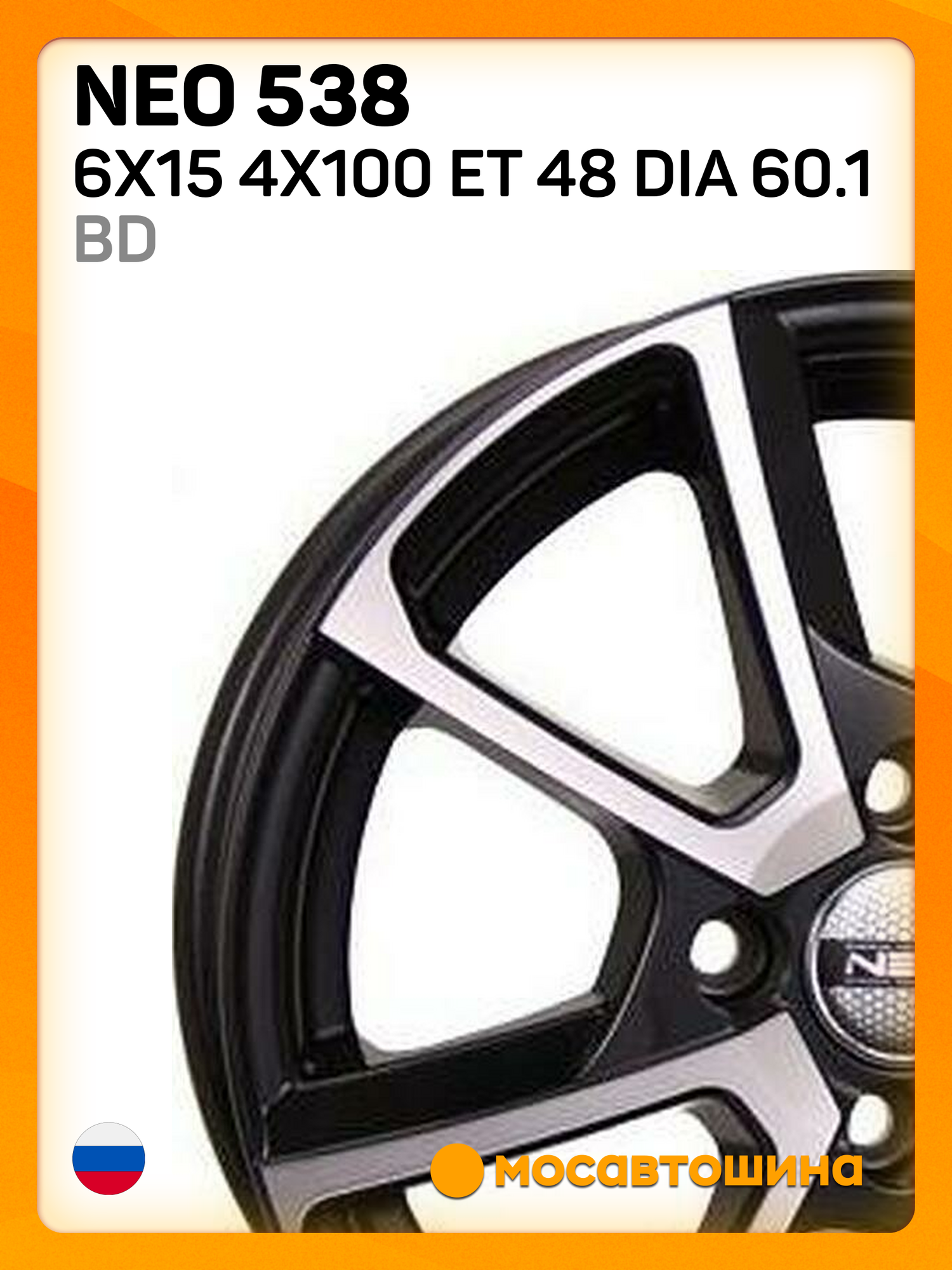 Купить Диск колесный Tech Line NEO 538 6,0×15 4×100 Dia60.1 ET48 цвет BD (черный с проточкой) с доставкой по всей России.