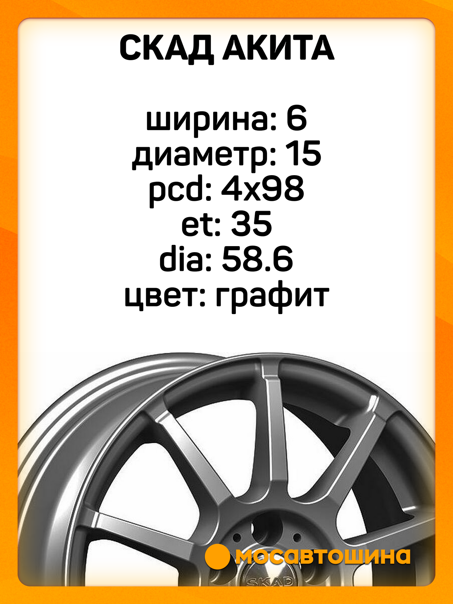 Выбирая диск Skad Акита, вы получаете стильный, надежный и качественный продукт, который прослужит вам долгие годы.