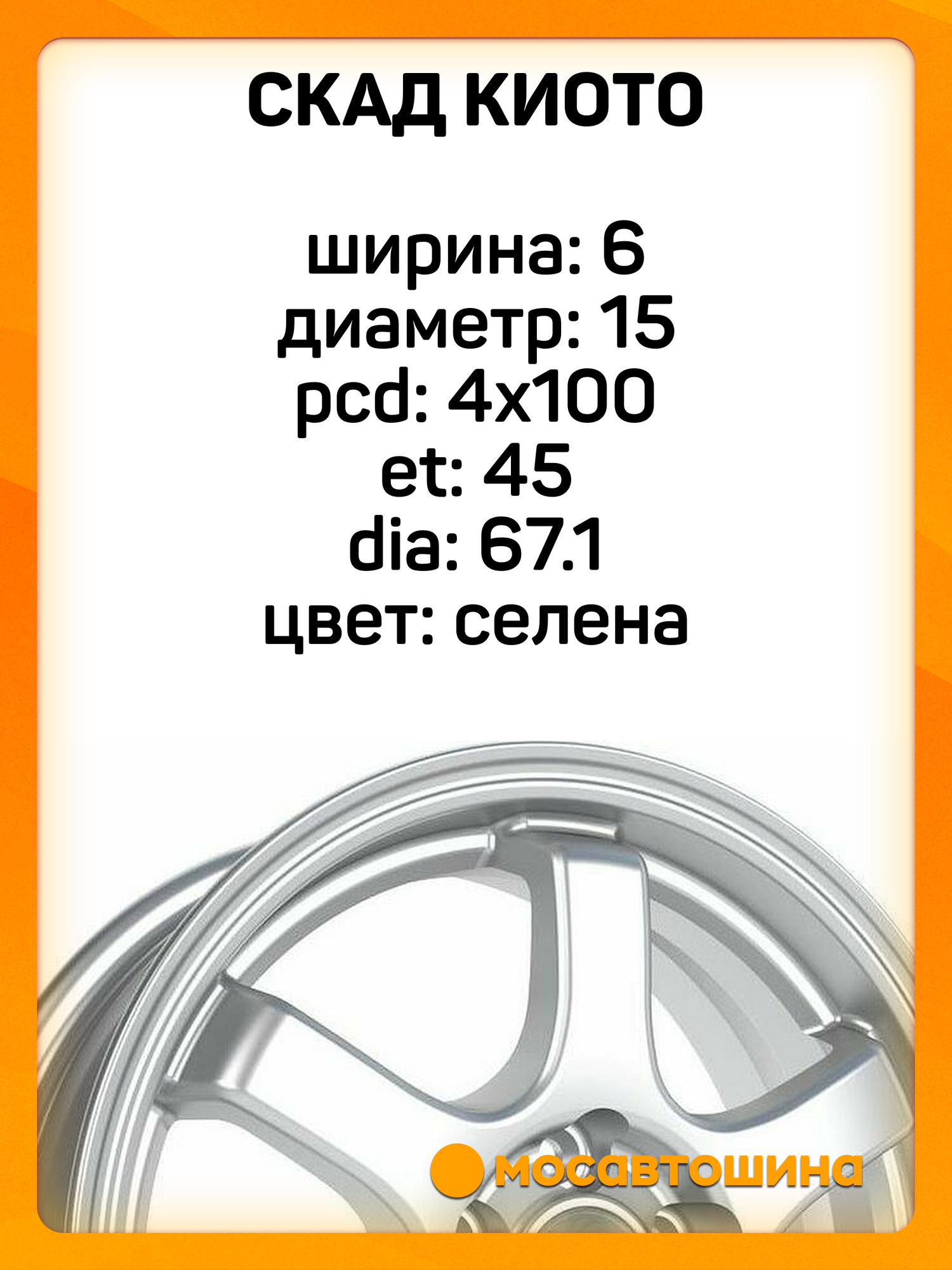 Купить Колесный диск Скад Киото 6×15 4*100 ET45 DIA67.1 Селена с доставкой по всей России. Колесный диск Скад Киото 6×15 4*100 ET45 DIA67.1 Селена: сравнение цен, характеристики, фото, актуальное наличие и цены.