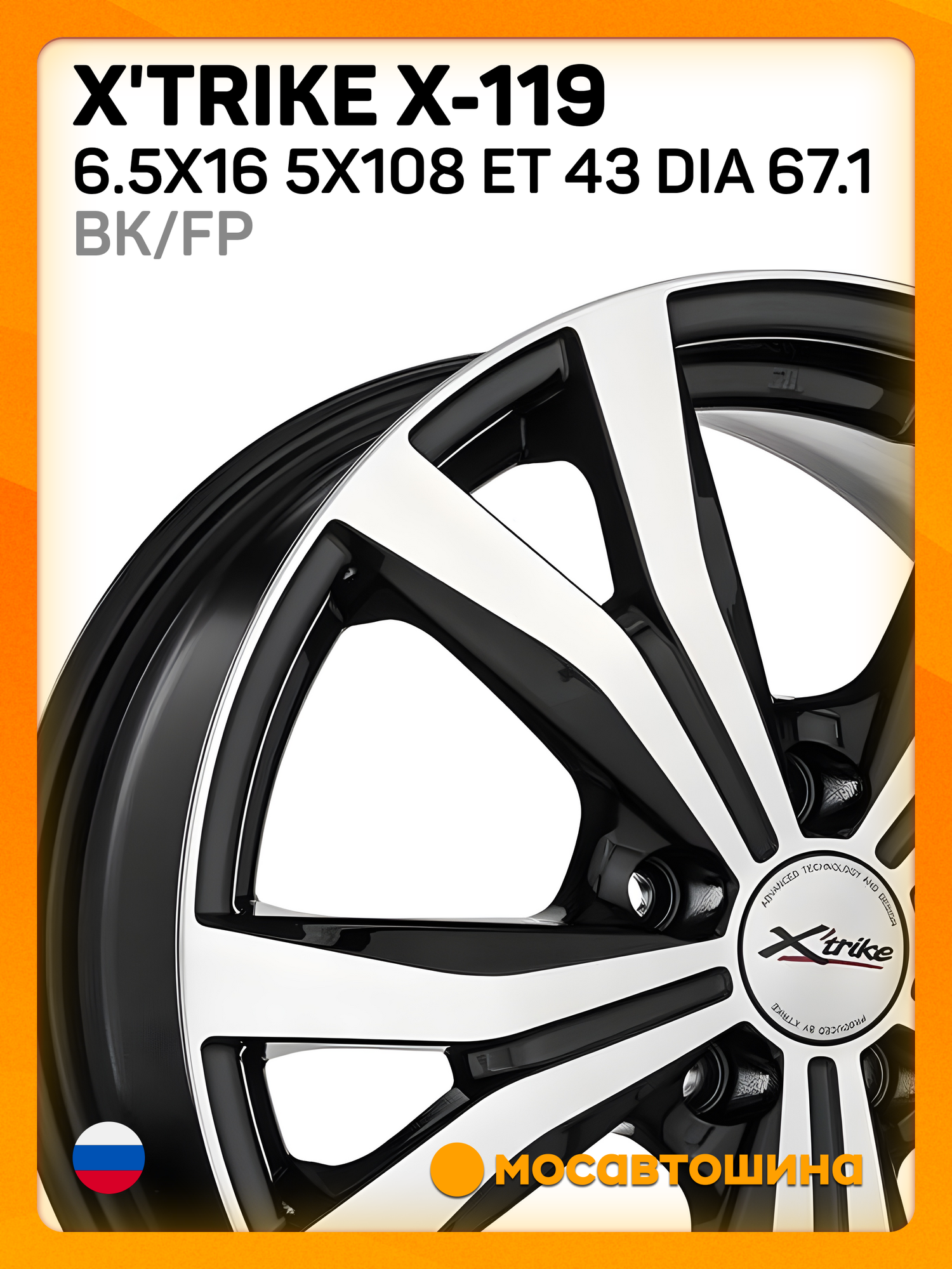 Купить Автомобильные диски X’trike X-119 6.5×16 5×108 ET 43 Dia 67.1 BK/FP с доставкой по всей России. Автомобильные диски X’trike X-119 6.5×16 5×108 ET 43 Dia 67.1 BK/FP: сравнение цен, характеристики, фото, актуальное наличие и цены.