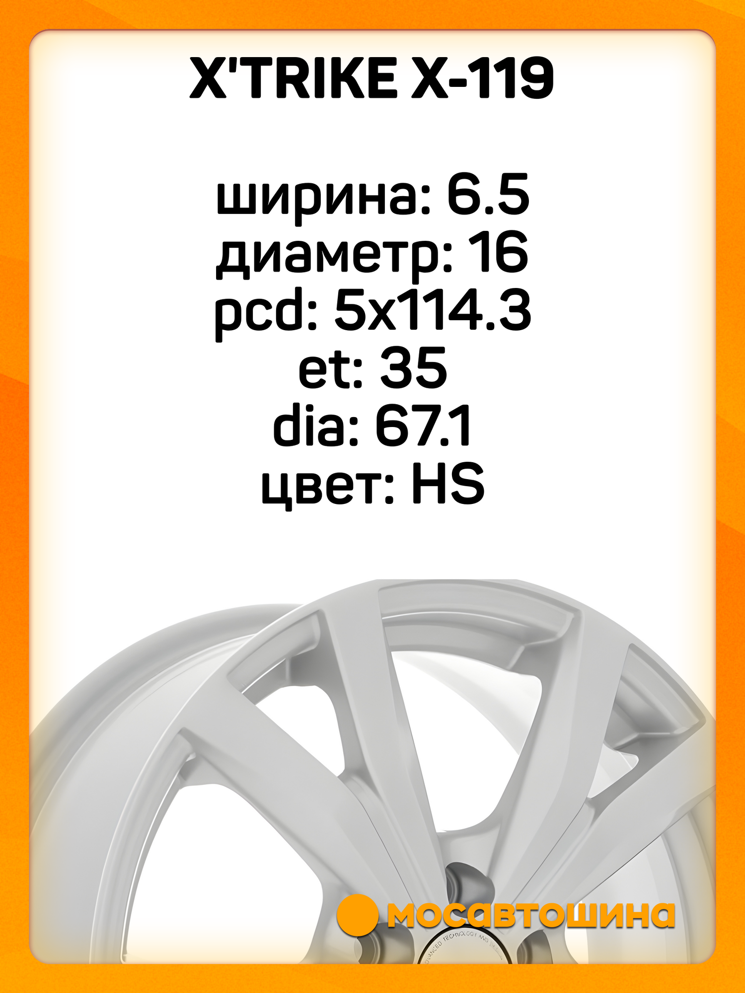 Купить Колесный диск X`trike X-119 6,5×16/5×114,3 ET35 D67,1 HS с доставкой по всей России. Колесный диск X`trike X-119 6,5×16/5×114,3 ET35 D67,1 HS: сравнение цен, характеристики, фото, актуальное наличие и цены.