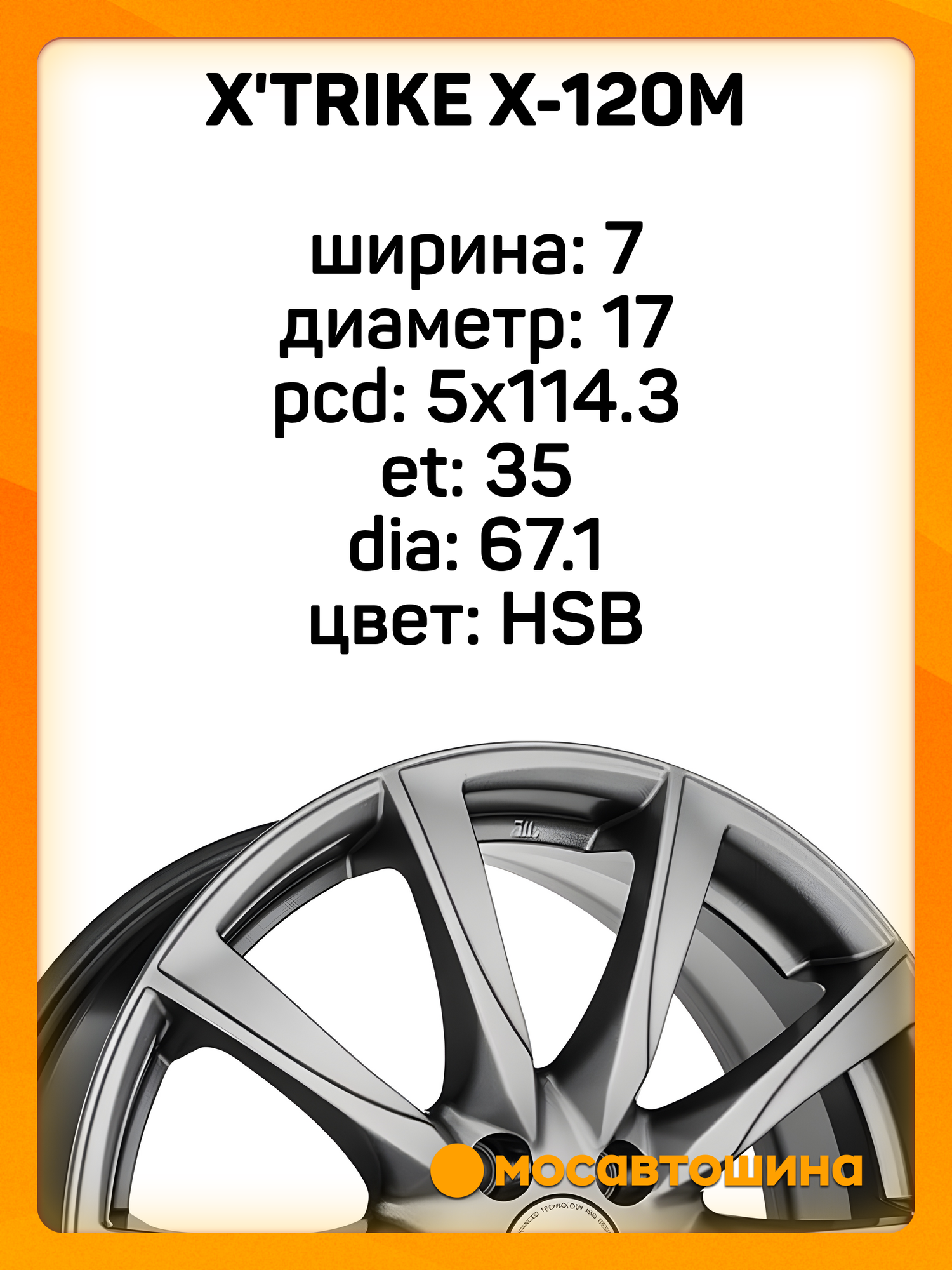 Купить Колесный диск X`trike X-120М 7,0×17/5×114,3 ET35 D67,1 HSB с доставкой по всей России. Колесный диск X`trike X-120М 7,0×17/5×114,3 ET35 D67,1 HSB: сравнение цен, характеристики, фото, актуальное наличие и цены.