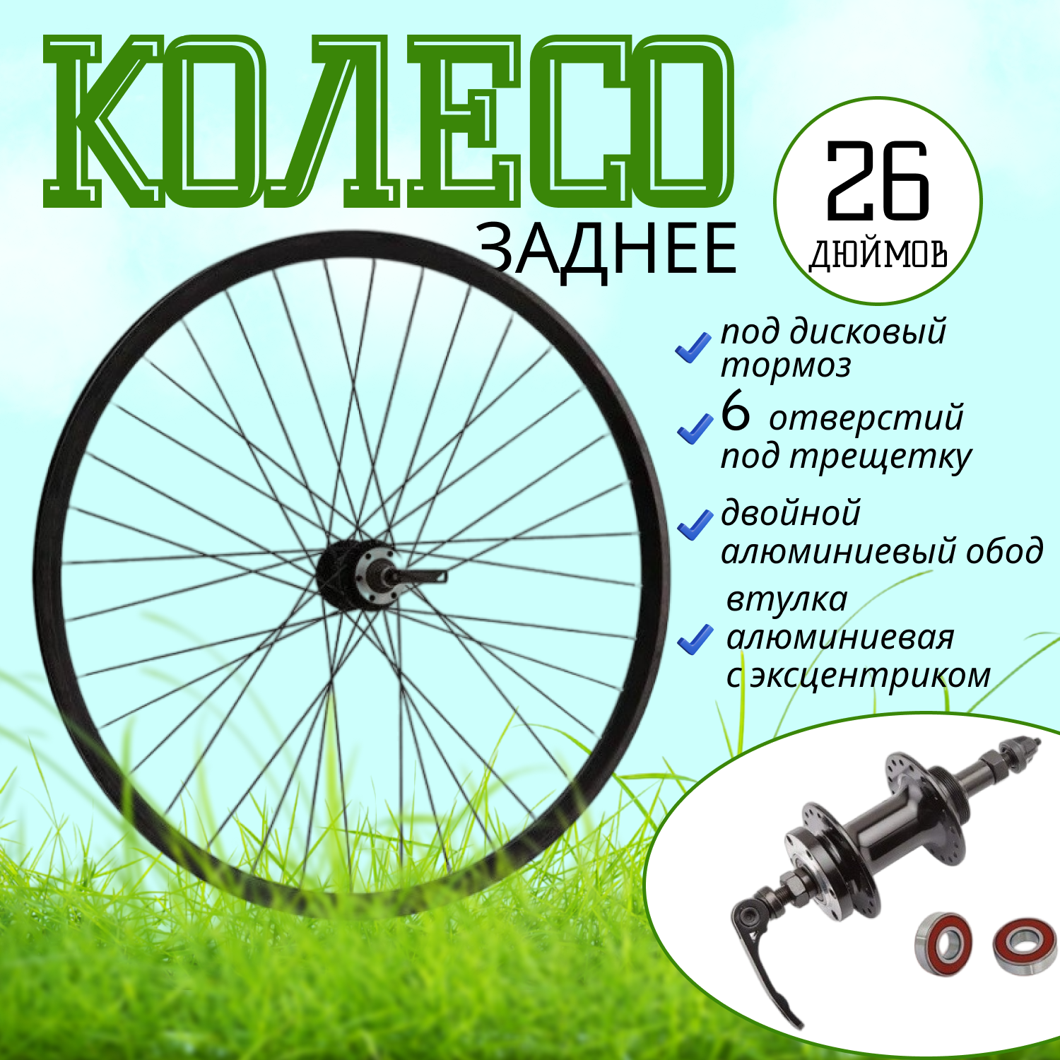 Колесо 26″ заднее «MTB» 2Al обод (диск 6отв алюм. втулка с эксцентриком под трещетку) пром подшипник: сравнение цен, характеристики, фото, актуальное наличие и цены.
