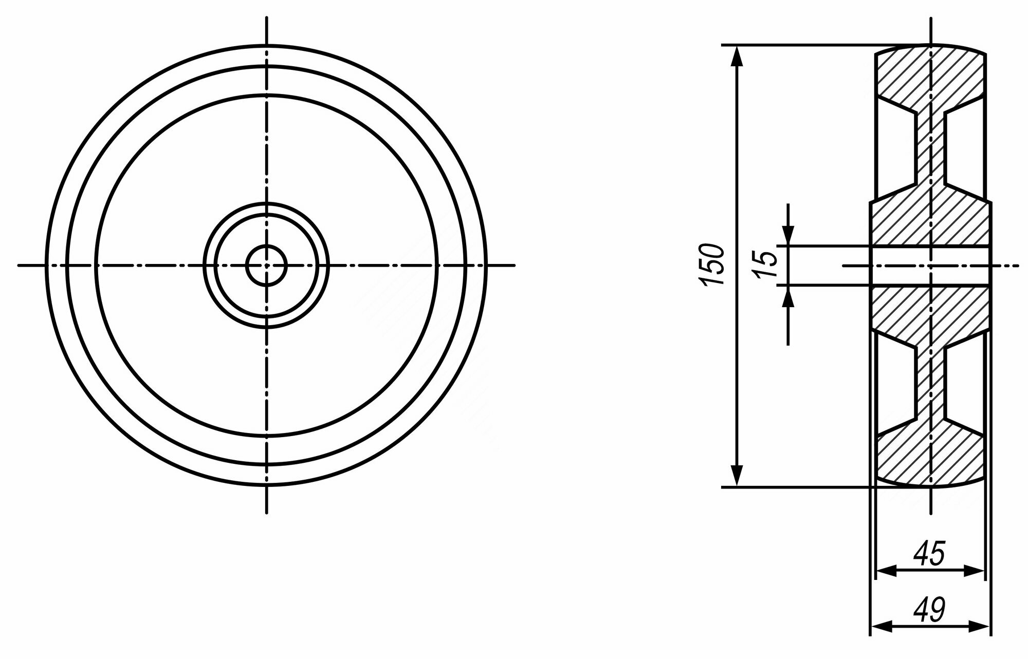 * Диаметр отверстия под ось: 15 мм