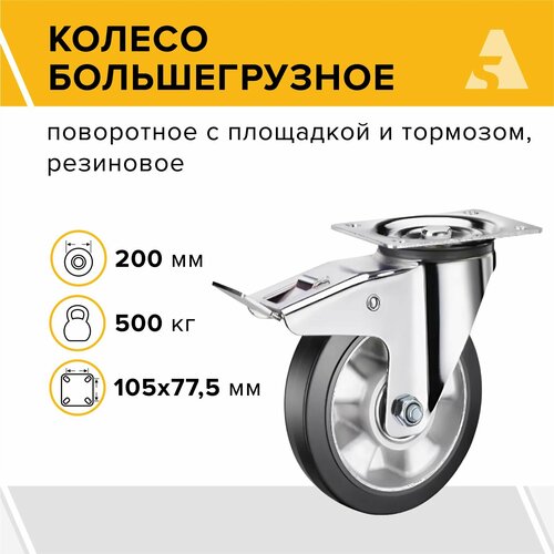 Колесо большегрузное SCDLb 80 поворотное, с площадкой и тормозом, 200 мм 500 кг, черная резина: сравнение цен, характеристики, фото, актуальное наличие и цены.