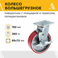 Купить Колесо большегрузное SCPB 63, поворотное с площадкой, c тормозом, 150 мм, 360 кг, полиуретан с доставкой по всей России.