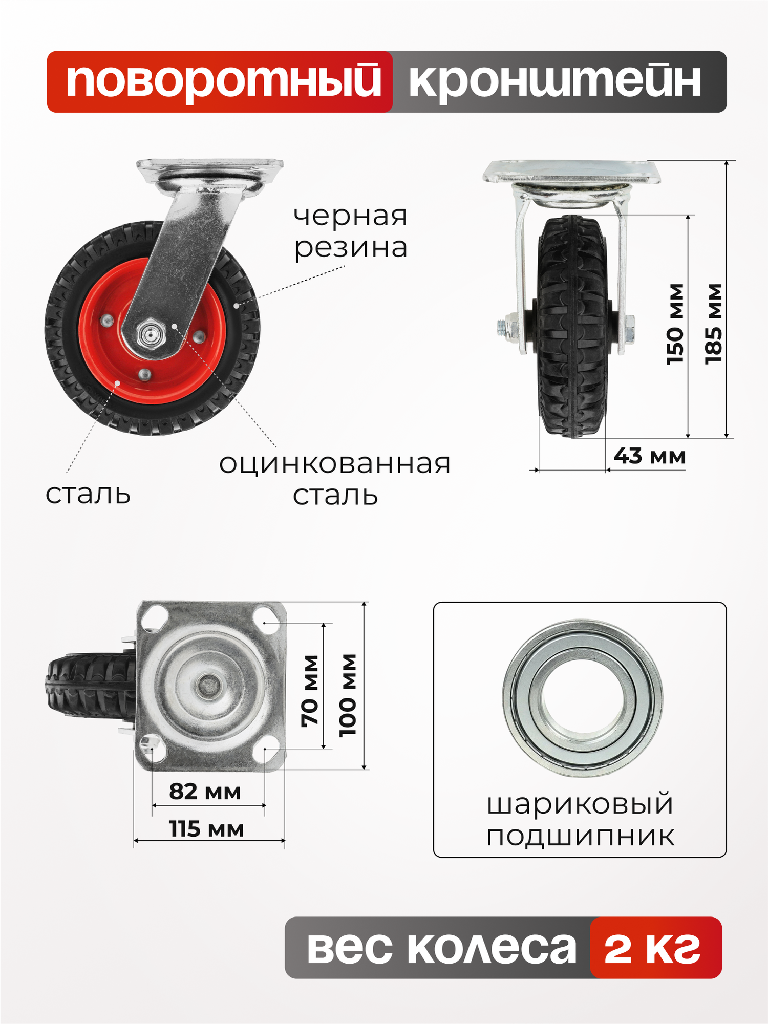 Колесо для тележки поворотное, Стелла-техник 5001-160 (150мм,160кг) черная резина, сталь: сравнение цен, характеристики, фото, актуальное наличие и цены.