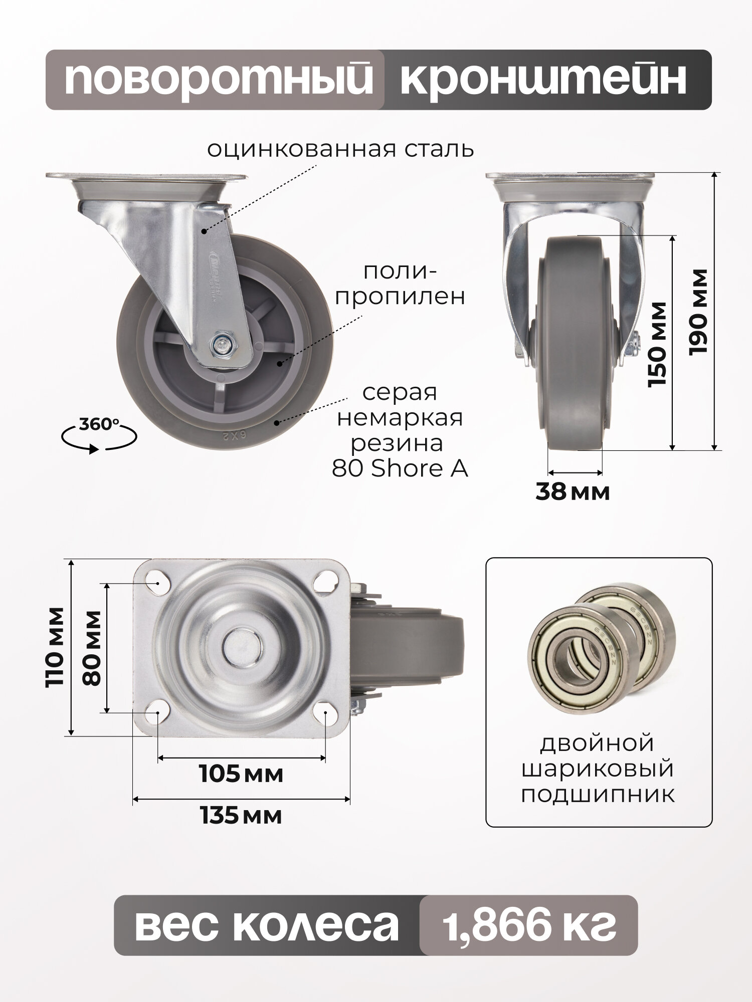 Колесо для тележки Стелла-техник N48150TPR поворотное, d 150 мм, г/п 250 кг: сравнение цен, характеристики, фото, актуальное наличие и цены.