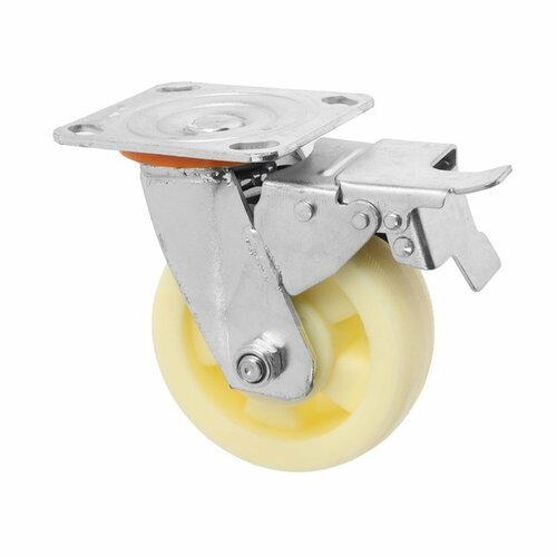 Маневренность и контроль для ваших тележек! Поворотное колесо 125 мм со стопором — это функциональный комплектующий элемент для сборки и ремонта транспортного оборудования. Оно обеспечивает плавное движение и фиксацию техники в нужном положении. Полипропиленовое покрытие колеса: Материал PP сохраняет форму при нагрузках до 125 кг на одно колесо. Не оставляет чёрных следов на напольных покрытиях и устойчив к воздействию влаги. Поворотная платформа с тормозом: Колесо вращается на 360 градусов для маневрирования в ограниченном пространстве. Рычажный стопор блокирует вращение и движение, предотвращая самопроизвольное смещение тележки. Крепление на монтажной пластине: Площадка с четырьмя отверстиями под крепёж упрощает установку на деревянные или металлические основания. Подходит для замены изношенных колёс на существующем оборудовании. Бежевый цвет: Нейтральный оттенок сочетается с большинством видов складской и грузовой техники. Полипропилен не выцветает со временем под воздействием ультрафиолета. Сфера применения: Колесо используют для комплектации грузовых тележек, платформ и передвижных стоек в складских, производственных и торговых помещениях. Стопор обеспечивает безопасность при погрузочно-разгрузочных работах. Элемент для создания мобильности.