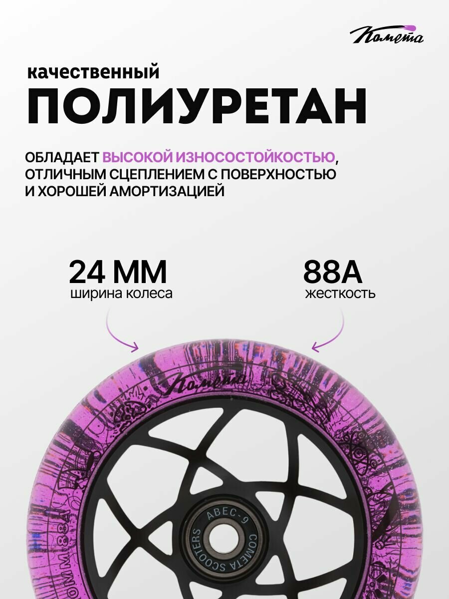 Купить Колесо для трюкового самоката Комета 110мм Атом (Фиолетовый с блёстками / Черный) с доставкой по всей России.