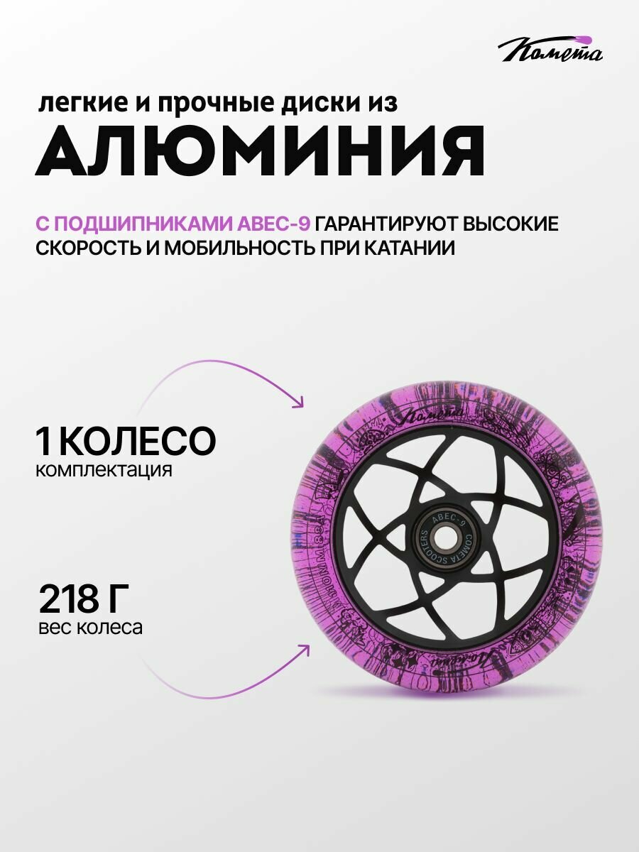 Колесо для трюкового самоката Комета 110мм Атом (Фиолетовый с блёстками / Черный): сравнение цен, характеристики, фото, актуальное наличие и цены.