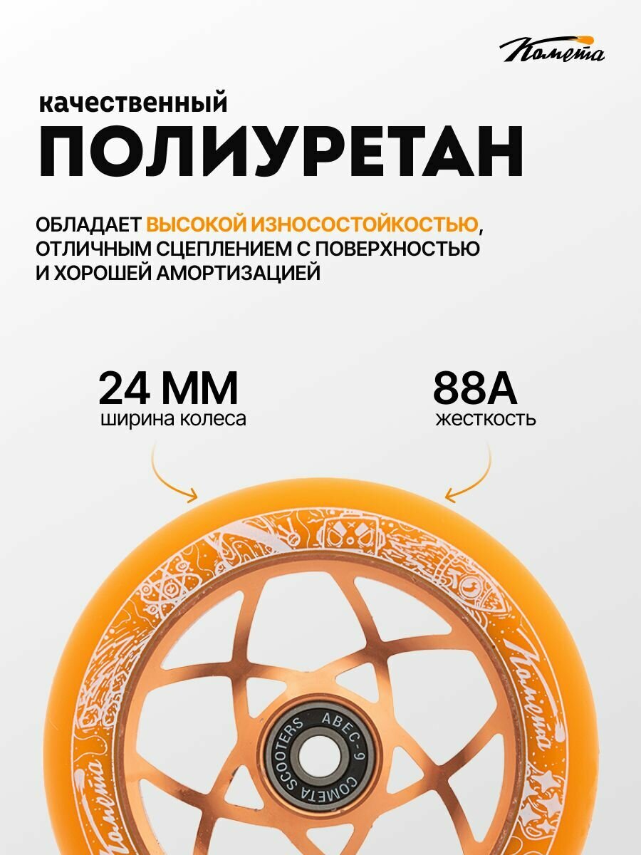Купить Колесо для трюкового самоката Комета 110мм Атом (Оранжевый / Оранжевый) с доставкой по всей России. Колесо для трюкового самоката Комета 110мм Атом (Оранжевый / Оранжевый): сравнение цен, характеристики, фото, актуальное наличие и цены.