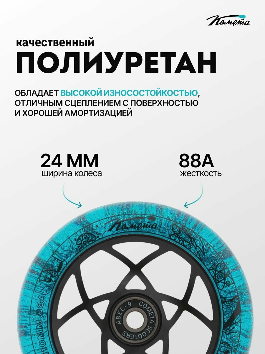 Колесо для трюкового самоката Комета 110мм Атом (Синий с блёстками / Черный): сравнение цен, характеристики, фото, актуальное наличие и цены.
