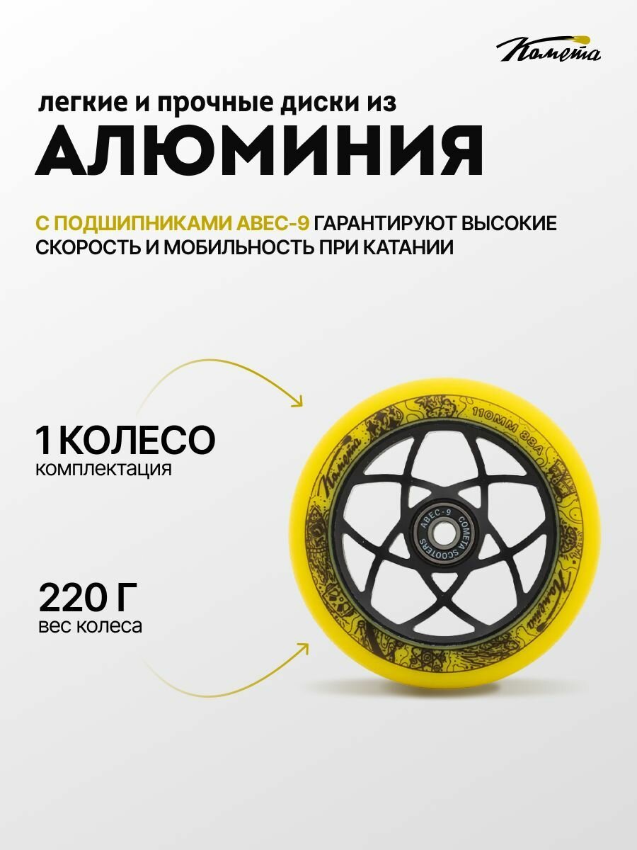 Колесо для трюкового самоката Комета 110мм Атом (Желтый / Черный): сравнение цен, характеристики, фото, актуальное наличие и цены.