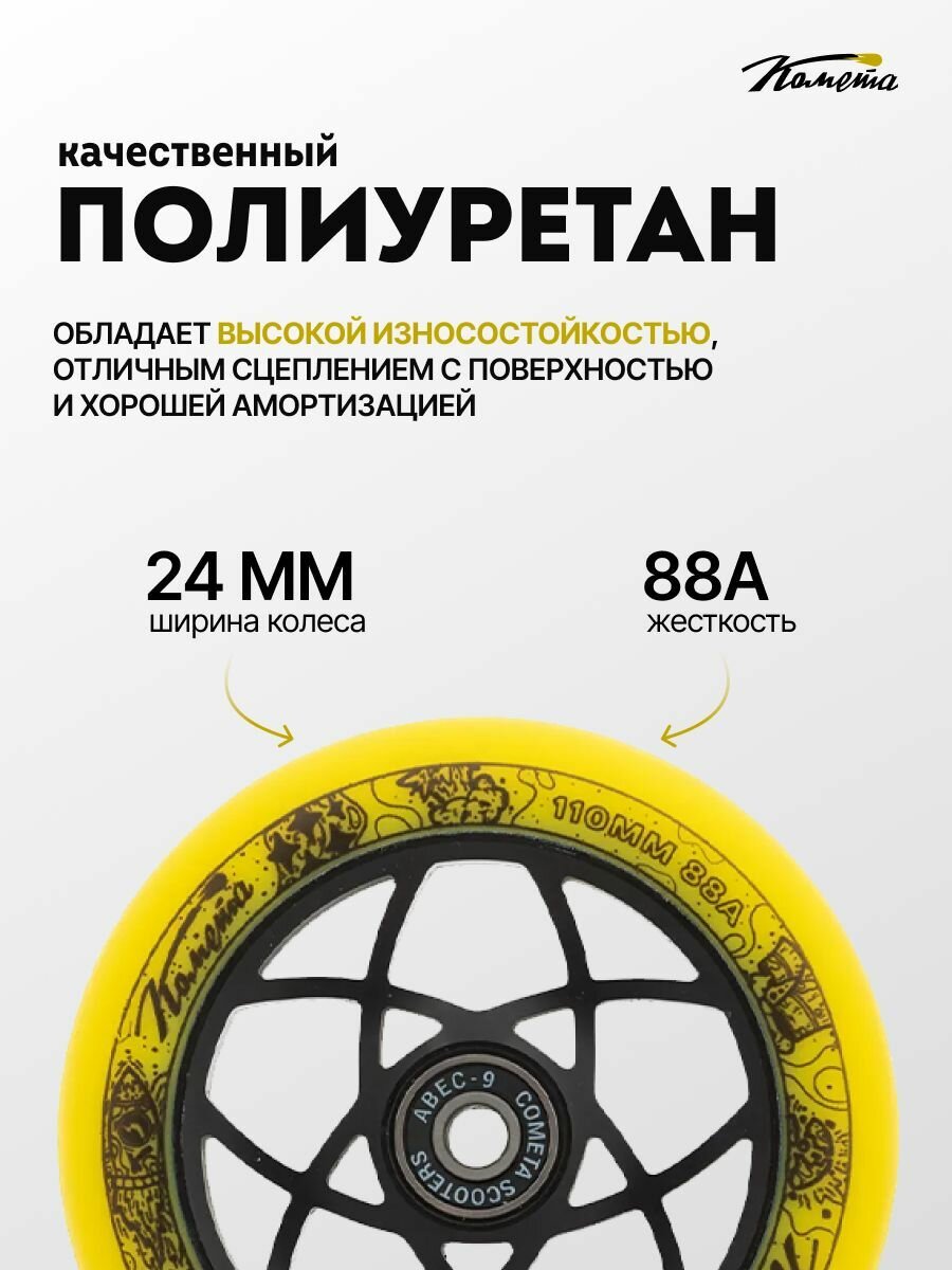 Купить Колесо для трюкового самоката Комета 110мм Атом (Желтый / Черный) с доставкой по всей России.