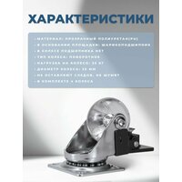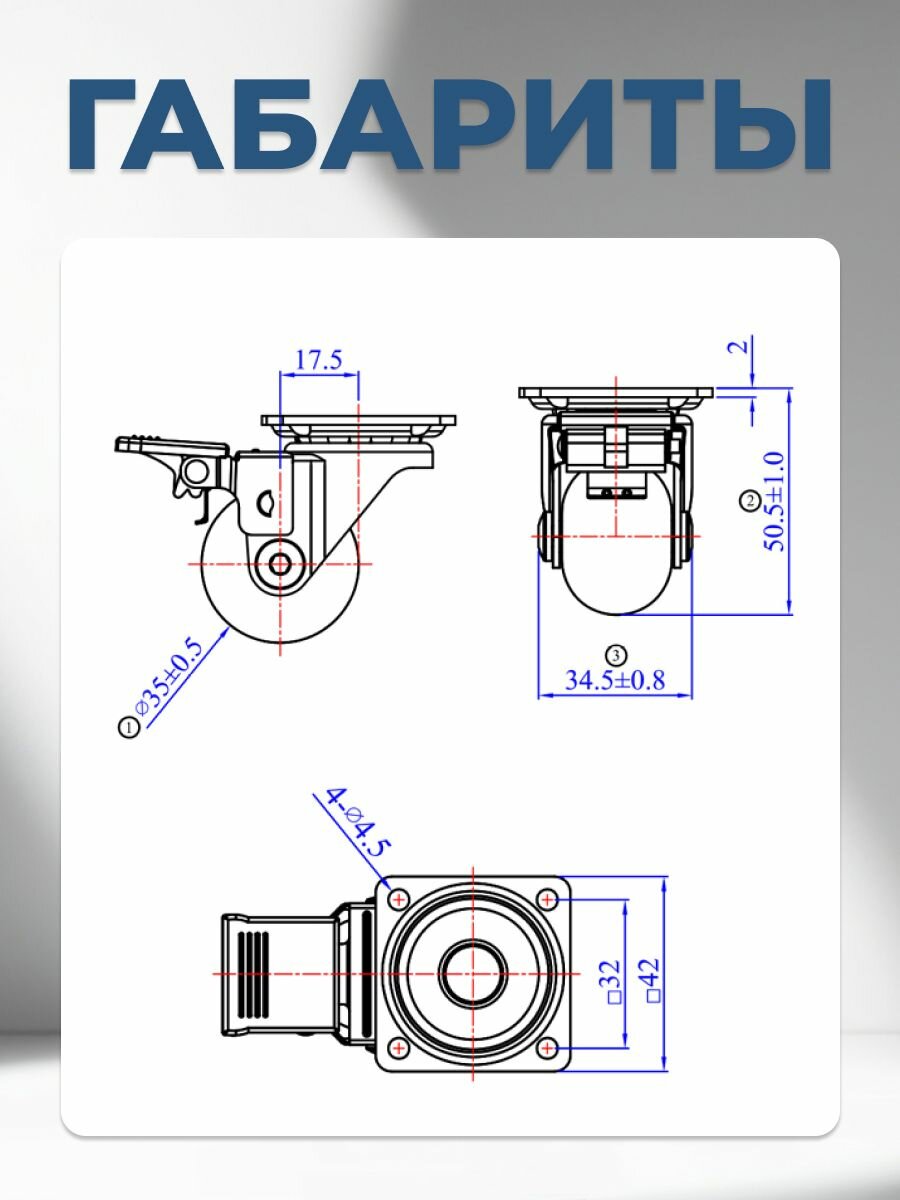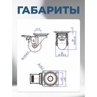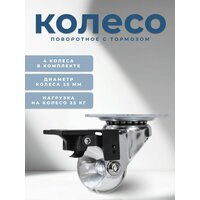 Колесо мебельное на площадке с тормозом 35 мм BRANTE, полупрозрачный полиуретан, комплект 4 шт, ролики для прикроватных тумбочек, журнальных столиков, тумб, шкафчиков, колесики для мебели