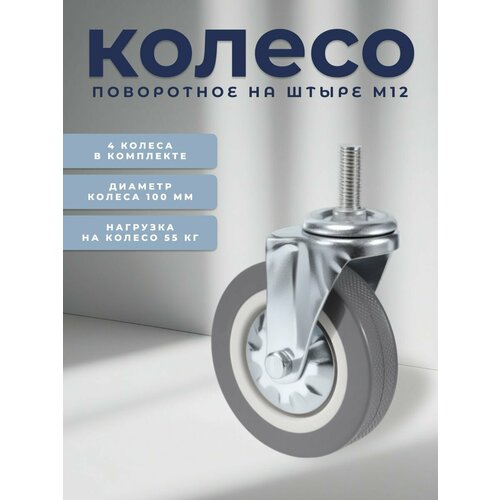 Купить Колесо мебельное поворотное 100 мм BRANTE на штыре М12, комплект 4 шт, серая резина (33100T), ролик для прикроватных тумбочек, журнальных столиков, тумб, шкафчиков, колесики для мебели с доставкой по всей России. Колесо мебельное поворотное 100 мм BRANTE на штыре М12, комплект 4 шт, серая резина (33100T), ролик для прикроватных тумбочек, журнальных столиков, тумб, шкафчиков, колесики для мебели: сравнение цен, характеристики, фото, актуальное наличие и цены.