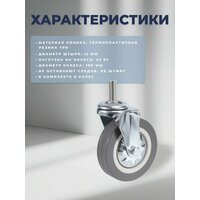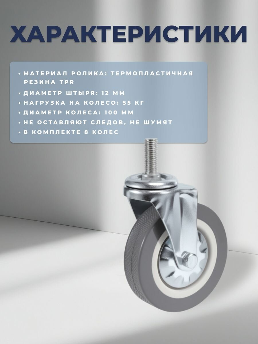 Колесо мебельное поворотное 100 мм BRANTE на штыре М12, комплект 8 шт, серая резина (33100T), ролик для прикроватных тумбочек, журнальных столиков, тумб, шкафчиков, колесики для мебели: сравнение цен, характеристики, фото, актуальное наличие и цены.