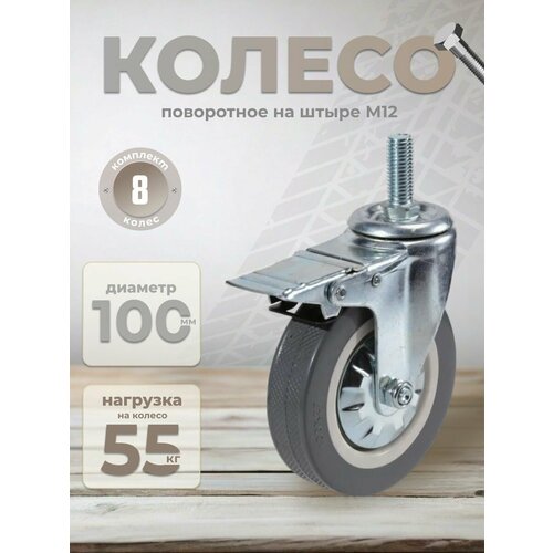 Колесо мебельное поворотное 100 мм BRANTE на штыре с тормозом, комплект 8 шт, серая резина (330100TB), ролик для прикроватных тумбочек, журнальных столиков, тумб, шкафчиков, колесики для мебели: сравнение цен, характеристики, фото, актуальное наличие и цены.