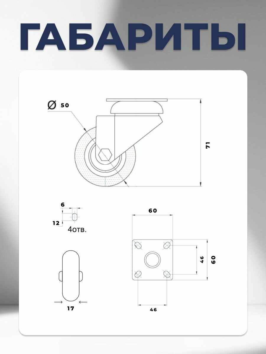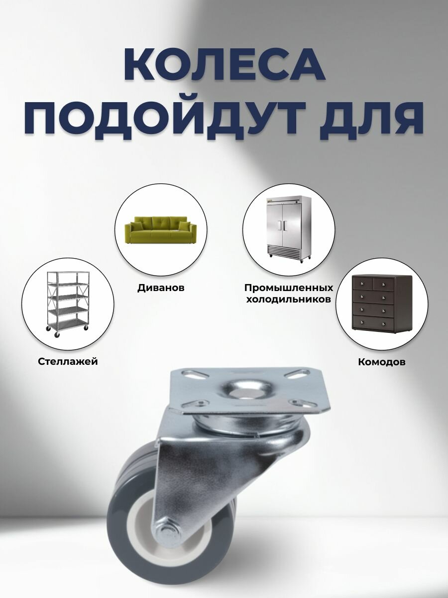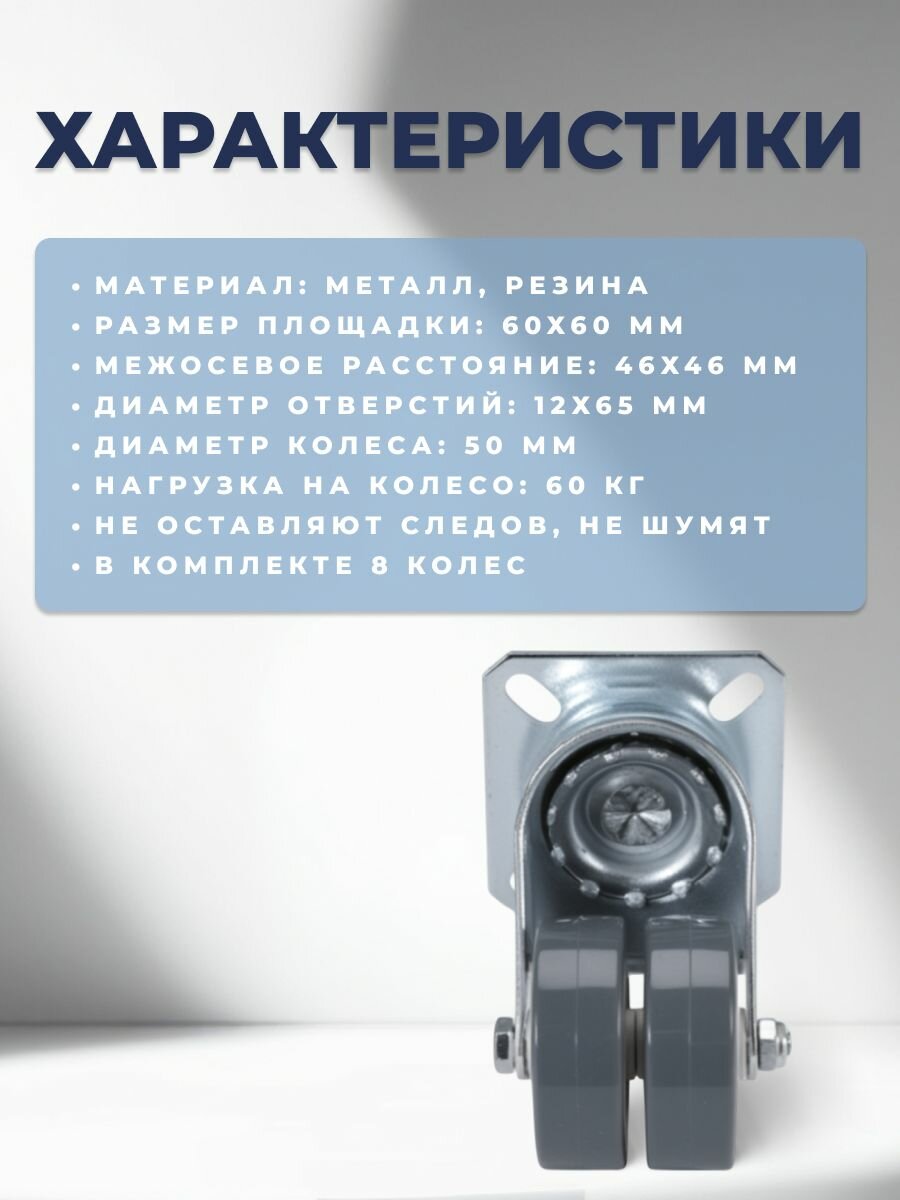 Колесо мебельное поворотное 50 мм BRANTE двухрядное на площадке, серая резина, комплект 8 шт, колесная опора, ролики мебельные для тумбочек, журнальных столиков, кресла офисного: сравнение цен, характеристики, фото, актуальное наличие и цены.