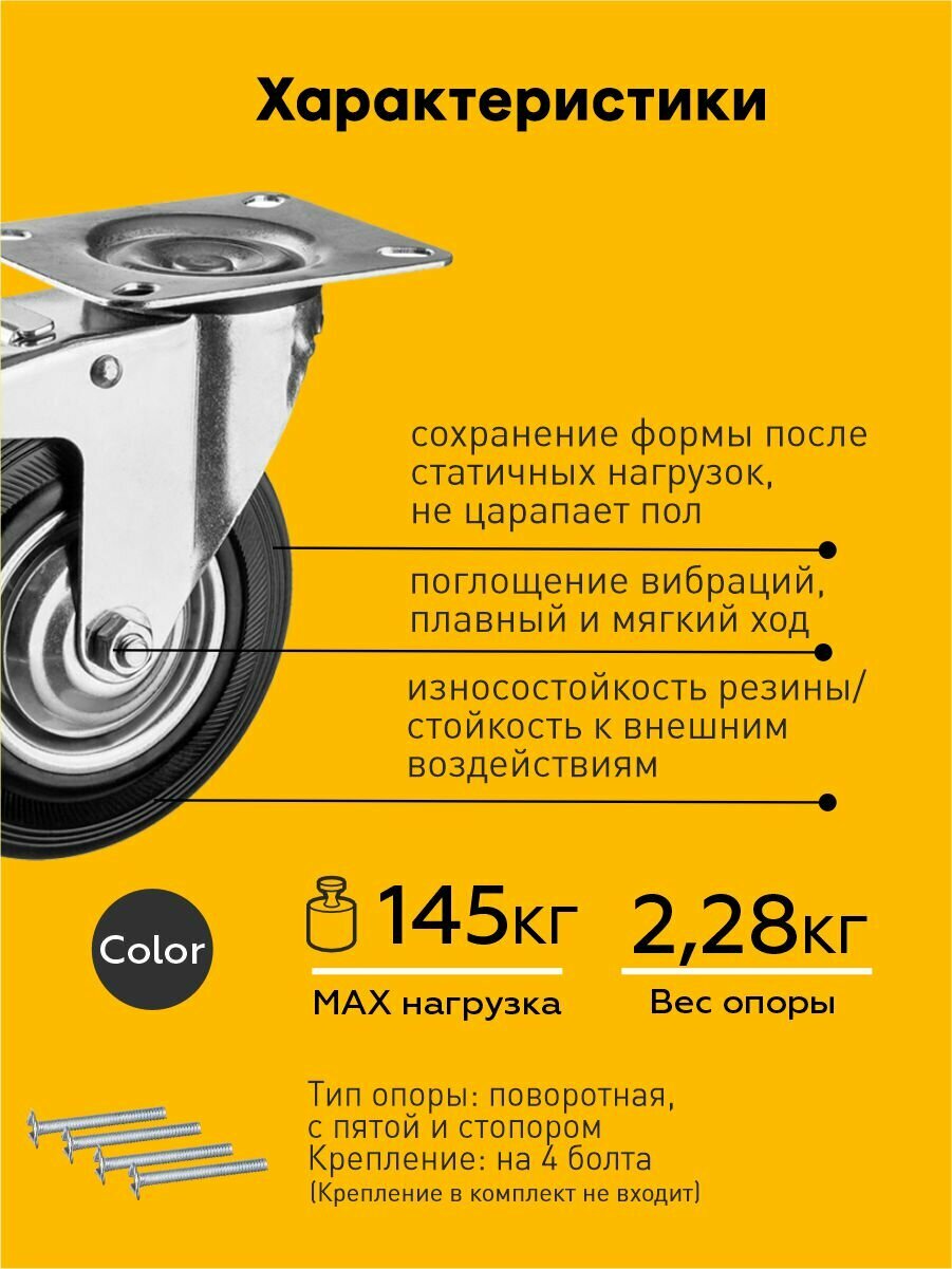 Колесо мебельное поворотное на площадке с тормозом большегрузное 160 мм (H191, 145кг): сравнение цен, характеристики, фото, актуальное наличие и цены.