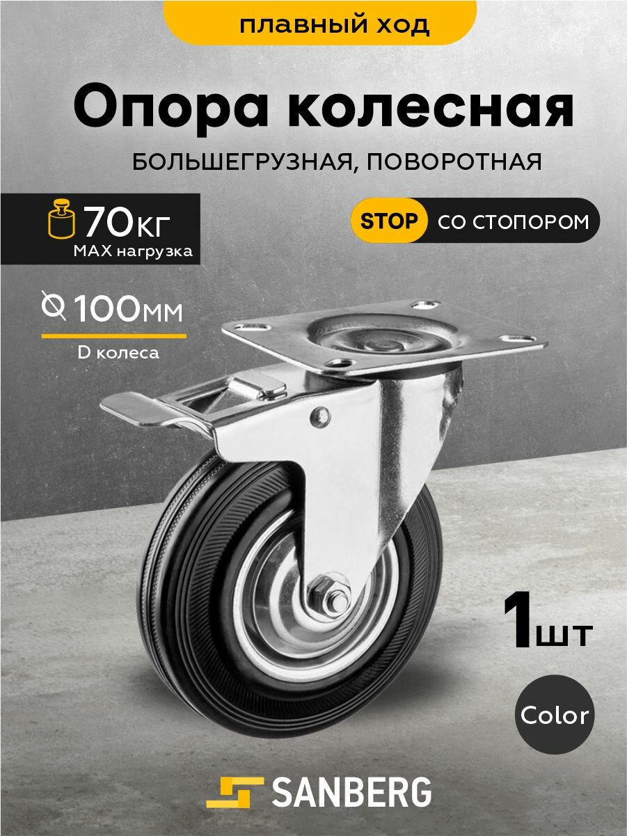 Колесо мебельное поворотное на площадке SANBERG большегрузное ,100 мм (H130, 70кг): сравнение цен, характеристики, фото, актуальное наличие и цены.