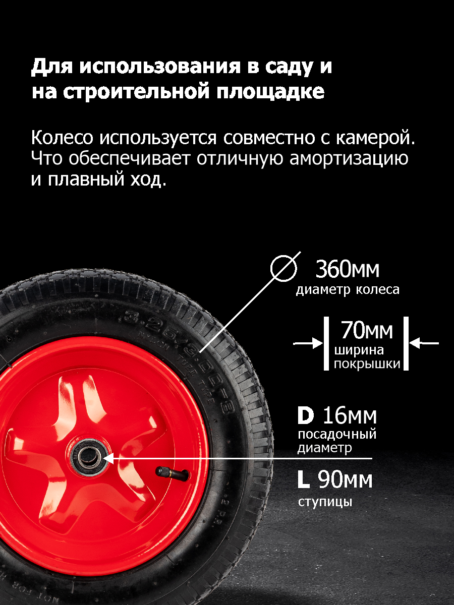 Колесо пневматическое для тачки садовой 3.00-8 PR2400-16 (6203, 6203S) (d колеса 360 мм, d ступицы 16 мм, L ступицы 90): сравнение цен, характеристики, фото, актуальное наличие и цены.