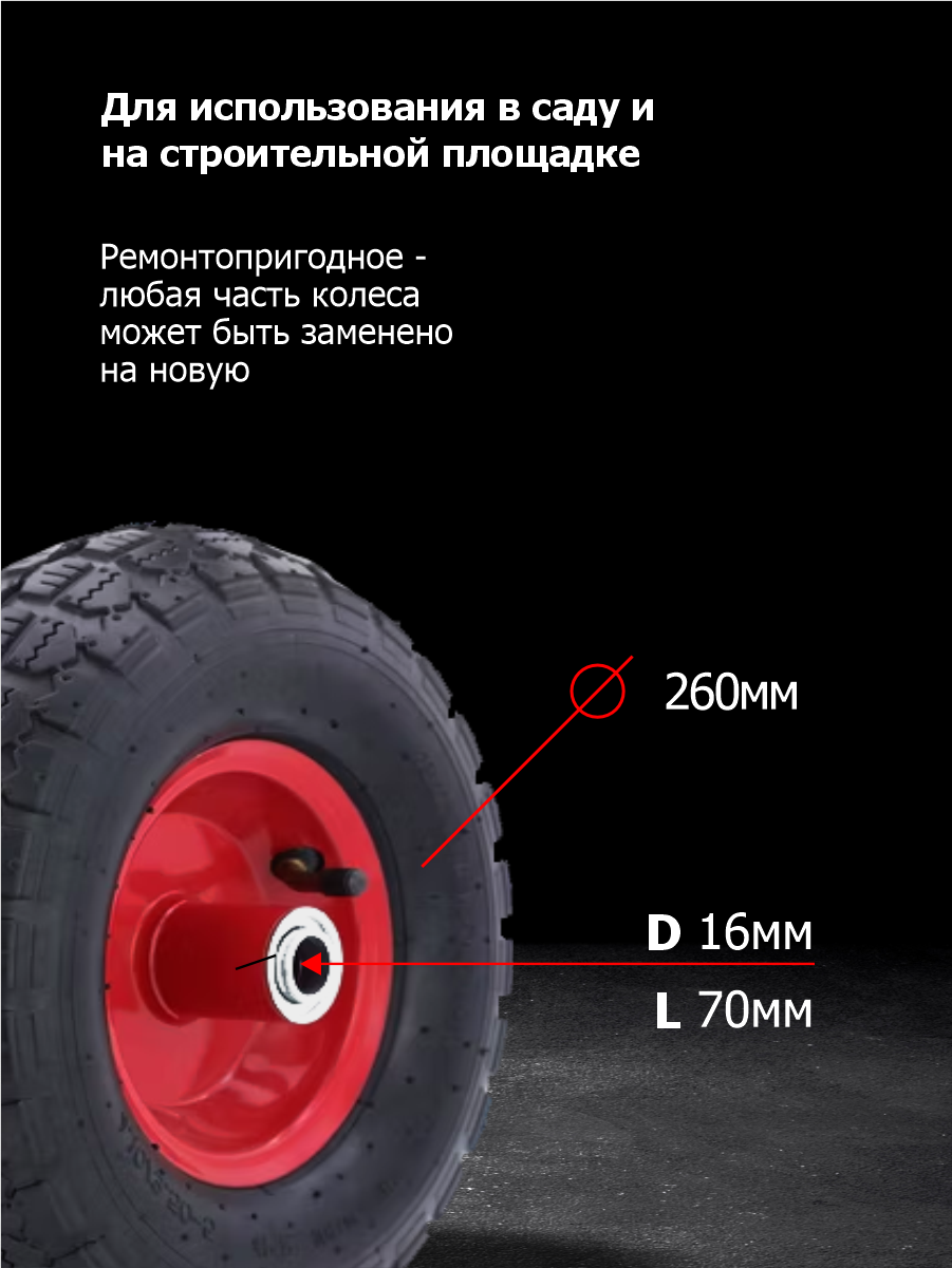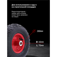Колесо пневматическое для тачки садовой 3.50-4 PR1802-16 (d колеса 260 мм, d ступицы 16 мм, L ступицы 70 мм): сравнение цен, характеристики, фото, актуальное наличие и цены.