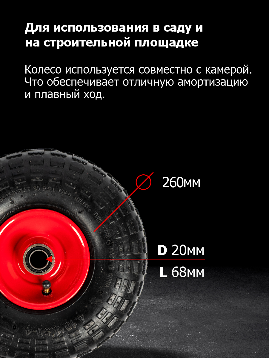 Колесо пневматическое для тачки садовой 3.50-4 PR1802-20 (d колеса 260 мм, d ступицы 20 мм, L ступицы 68 мм): сравнение цен, характеристики, фото, актуальное наличие и цены.