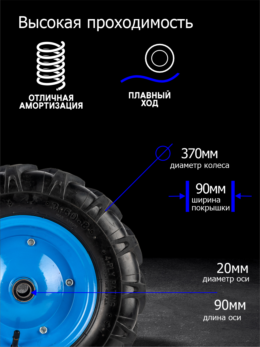 Колесо пневматическое для тачки садовой 3.50-8 «Мотоблок» (d кол 370 мм, d ступ 20 мм, L ступицы 90 мм): сравнение цен, характеристики, фото, актуальное наличие и цены.