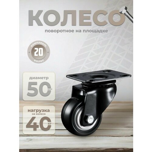 Колесо мебельное поворотное на площадке с двухрядным шариковым подшипником 50 мм BRANTE, комплект 20 шт, черный ПВХ, ролик для прикроватных тумбочек, журнальных столиков, колесики для мебели: сравнение цен, характеристики, фото, актуальное наличие и цены.
