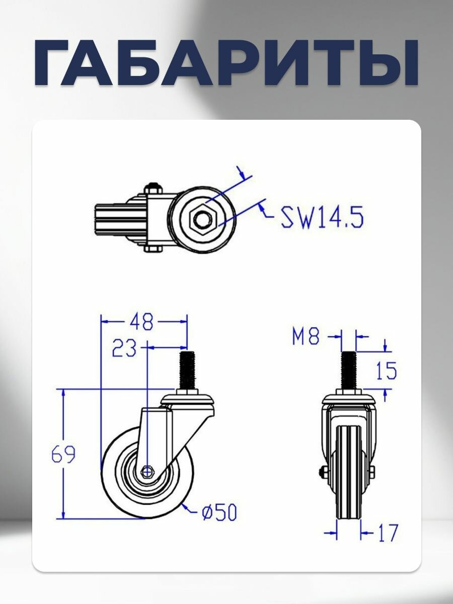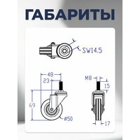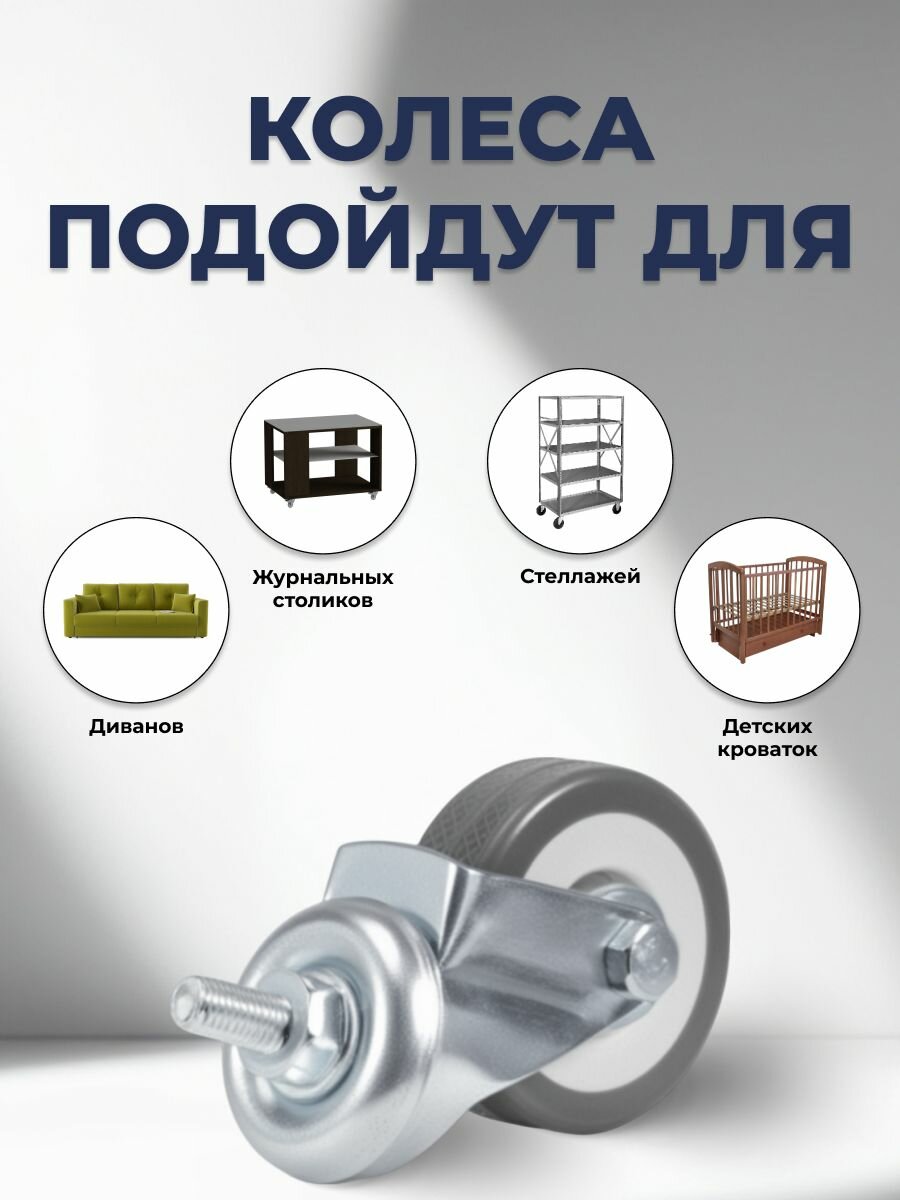 Колесо поворотное на штыре 50 мм BRANTE, серая резина (33050T), комплект 20 шт, ролики для прикроватных тумбочек, журнальных столиков, тумб, шкафчиков, колесики для мебели: сравнение цен, характеристики, фото, актуальное наличие и цены.