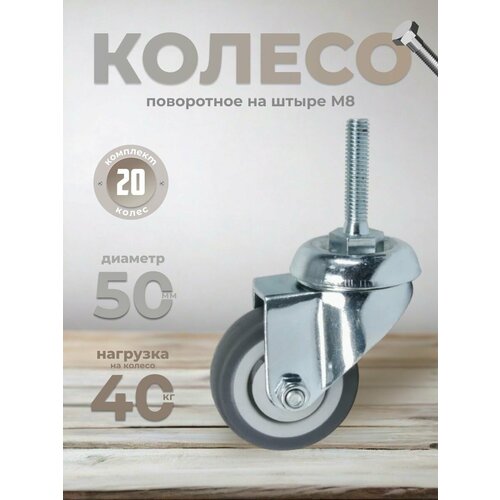 Колесо поворотное на штыре М8 50 мм BRANTE, термопластичная резина, комплект 20 шт, ролики для прикроватных тумбочек, журнальных столиков, тумб, шкафчиков, колесики для мебели: сравнение цен, характеристики, фото, актуальное наличие и цены.