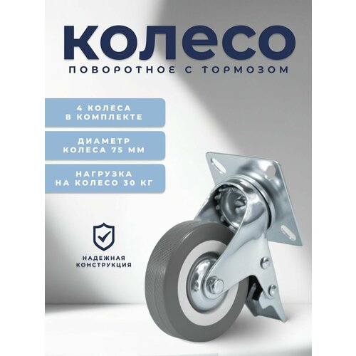 Купить Колесо поворотное с тормозом 75 мм BRANTE, серая резина (33075B), комплект 4 шт, ролики для прикроватных тумбочек, журнальных столиков, тумб, шкафчиков, колесики для мебели с доставкой по всей России. Колесо поворотное с тормозом 75 мм BRANTE, серая резина (33075B), комплект 4 шт, ролики для прикроватных тумбочек, журнальных столиков, тумб, шкафчиков, колесики для мебели: сравнение цен, характеристики, фото, актуальное наличие и цены.