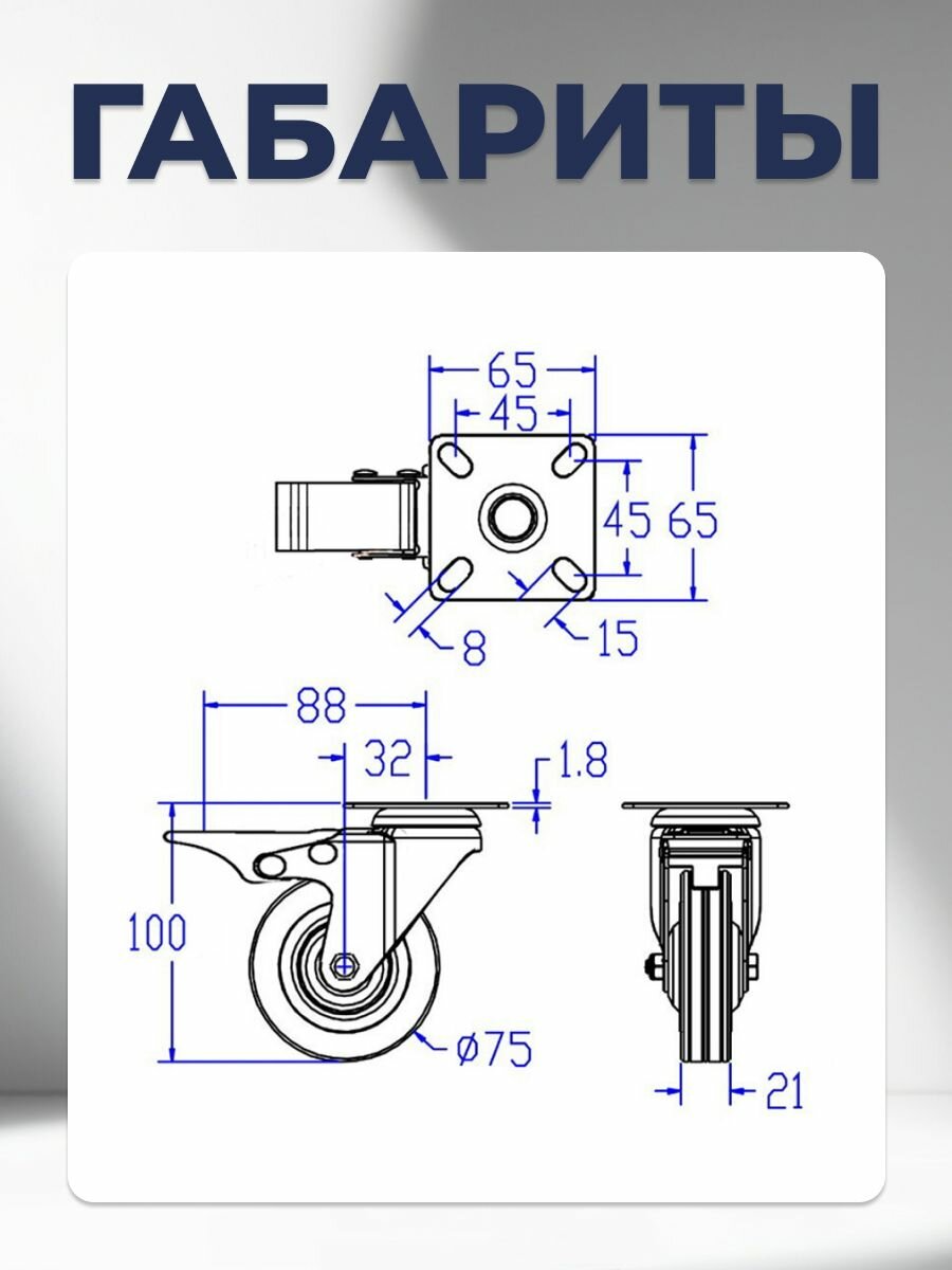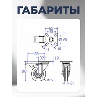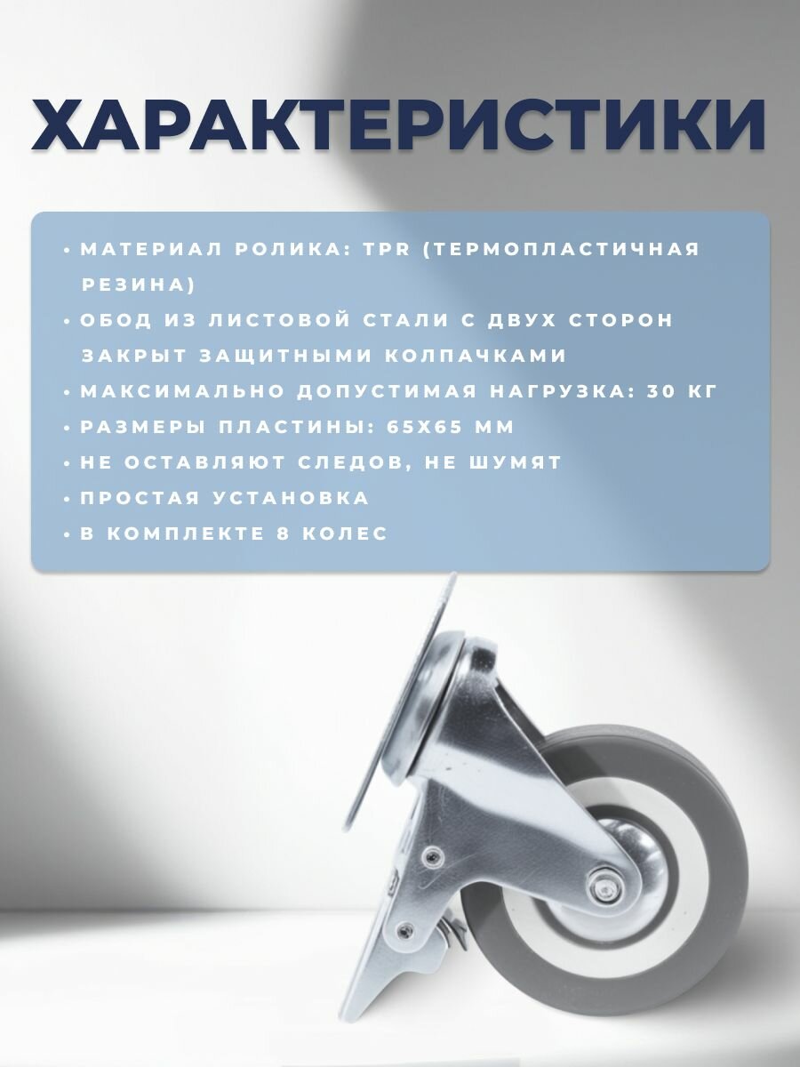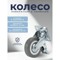 Колесо поворотное с тормозом 75 мм BRANTE, серая резина (33075B), комплект 8 шт, ролики для прикроватных тумбочек, журнальных столиков, тумб, шкафчиков, колесики для мебели: сравнение цен, характеристики, фото, актуальное наличие и цены.
