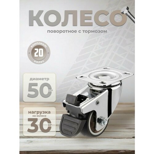 Колесо поворотное с тормозом с подшипником 50 мм BRANTE, комплект 20 шт, ролики для прикроватных тумбочек, журнальных столиков, тумб, шкафчиков: сравнение цен, характеристики, фото, актуальное наличие и цены.