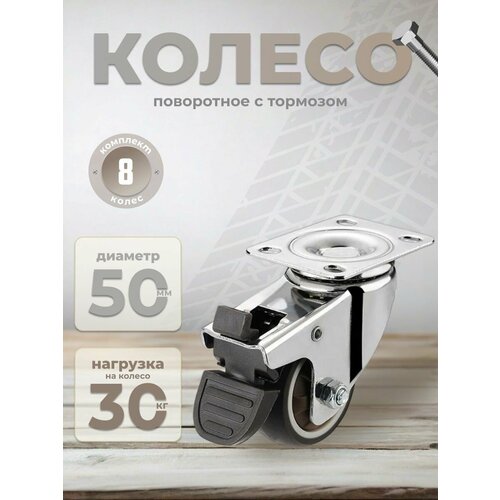 Колесо поворотное с тормозом с подшипником 50 мм BRANTE, комплект 8 шт, ролики для прикроватных тумбочек, журнальных столиков, тумб, шкафчиков: сравнение цен, характеристики, фото, актуальное наличие и цены.
