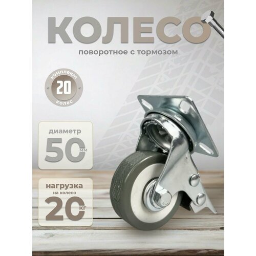 Колесо поворотное с тормозом 50 мм BRANTE, комплект 20 шт, серая резина, ролики для прикроватных тумбочек, журнальных столиков, тумб, шкафчиков, колесики для мебели: сравнение цен, характеристики, фото, актуальное наличие и цены.