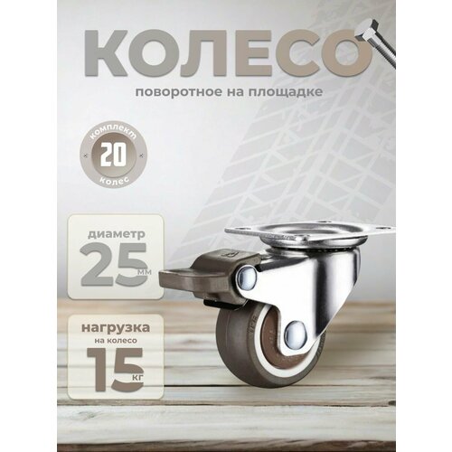 Колесо поворотное с торозом с подшипником 25 мм BRANTE, комплект 20 шт, ролики для прикроватных тумбочек, журнальных столиков, тумб, шкафчиков, колесики для мебели: сравнение цен, характеристики, фото, актуальное наличие и цены.